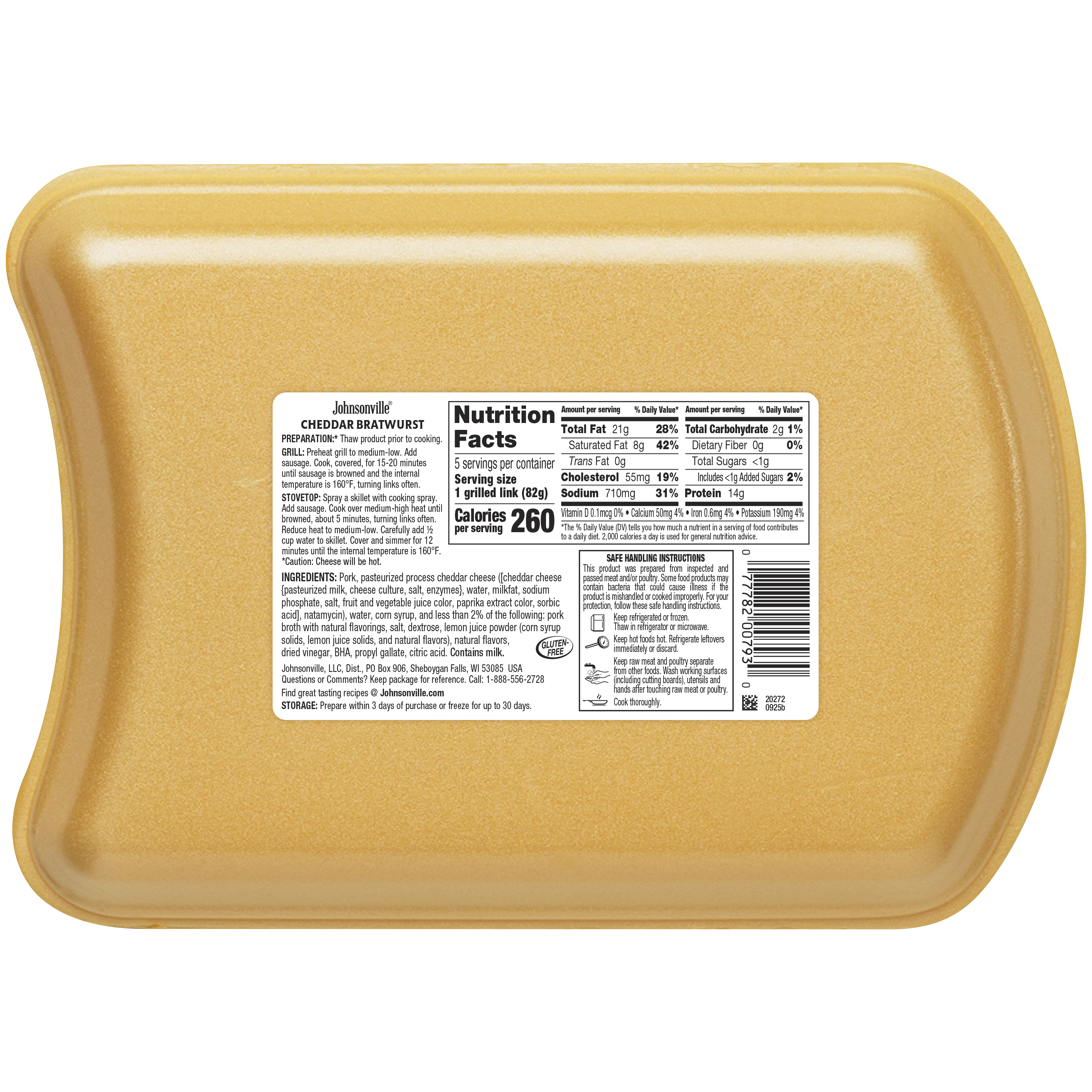 Say Cheese, Brat! Real Wisconsin cheddar cheese gives Johnsonville Cheddar Brats a unique flavor you'll love. Johnsonville Cheddar Brats are made with only premium cuts of pork and seasoned with a perfect blend of herbs and spices. The flavor combo of bratwurst and cheese are perfect for summer cookouts, Johnsonville Cheddar Brats easy to grill and taste great in a variety of recipes. Cook 'em low and slow!